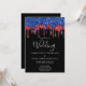 Convide seus amigos e família para comemorar seu dia especial com esses cartões de convite para casamento de preto vermelho e azul. Personalize com seus nomes e todas as suas informações de casamento. Esta coleção de casamentos tematizada da bandeira americana será uma favorita entre todos os militares, veteranos e forças armadas. Visite nossa coleção patriótica de casamento para convites para casamento vermelho branco e azul, favores de casamento, suprimentos de festa. COPYRIGHT © 2020 Judy Burrows, Black Dog Art - Todos Os Direitos Reservados. Elegante Black Red Glitter Drivers Casamento Convite