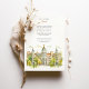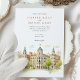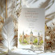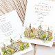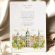 Celebre seu dia especial com este belo convite para casamento, mostrando a arquitetura icônica de Madri, Espanha. A frente apresenta uma visão pitoresca da cidade, com seus elegantes edifícios, cúpulas e torres, renderizados em um estilo aquoso macio e artístico. Lush greenery enquadra a cena, acrescentando um toque de beleza natural. O reverso, projetado para "Os Detalhes Mais Finos", continua o belo tema, mostrando o horizonte de Madri com uma perspectiva diferente, mantendo o encanto do original. O estilo de aquarela suave evoca um sentimento romântico e eterno. Este convite é perfeito para um casamento de destino em Madrid, uma celebração de temas espanhóis, ou para qualquer casal que aprecie uma boa arquitetura e uma estética sofisticada para o seu dia especial.