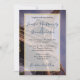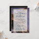 Um convite de casamento com uma fotografia da Torre Eiffel tirada a um ângulo que lhe dá uma perspectiva interessante. Acelerando o trabalho de latência de metal. Um quadro semitransparente com borda dourada colocada sobre cima.