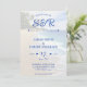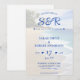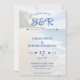 praia azul e branca, tudo em um convite de casamento com oceanos e palmeiras. Personalize-o com os detalhes do evento e o código QR do registro do casamento. Excelente para um casamento de verão.