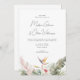 Este elegante convite para o casamento de destino contém lindos botânicos de aquarela incluindo folhas de palma, hibisco e ave do paraíso. A tipografia é clássica, mas moderna. Este é o convite perfeito para um tema de praia tropical ou casamento de destino. Consulte a coleção para obter mais itens de coordenação.