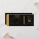 O convite para o ingresso de Black las vegas Boning passou com um mapa mundial de destino e cor falsa de ouro, Passagem de Casamento, Casamento de Destino, Passaporte com código QR Rsvp.