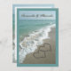 O Elegante Sand Hearts Beach Destino Convites De Casamento. Linda imagem cênica de água aquática clara, caindo na praia. Dois corações interligados simbolizam o amor eterno! Convites para Casamento de Destino de Praia, design e pré-visualização online. Adicione seu texto personalizado. Este item está disponível como uma coleção completa de casamento, incluindo convites, cartões RSVP, Salvar Datas, Magnets, Stickers, Cartões de Local de Mesa, Planejamento de Casamento e Binders de Álbum de Fotografias e Muito Mais!