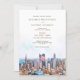 Convide convidados para o seu casamento na icônica cidade de São Francisco com este elegante convite com uma vista aquarela da linha do horizonte. A design captura os edifícios mais famosos da cidade e a bandeira americana voando alto, acrescentando um toque patriótico à paisagem urbana moderna. Perfeito para um destino ou casamento com a cidade, este convite combina elegância clássica com uma dica de aventura, convidando convidados a se juntar a vocês para uma celebração inesquecível no coração de São Francisco.