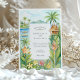 Coloque a cena para o seu casamento de destino tropical com este convite Ko Samui, de aquarela, com palmeiras exuberantes, florais vibrantes, arquitetura tradicional tailandesa, e visões de sereno mar. Perfeito para casamentos de praia na Tailândia, esta design romântica captura a essência da beleza da ilha e convida seus hóspedes para um cheio de celebração do sol, amor e aventura.
