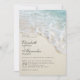 Este clássico e elegante convite para o casamento na praia de verão apresenta uma foto de close-up de uma praia com uma onda oceânica e mar, e uma tipografia elegante, perfeita para casamentos de destino.
