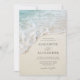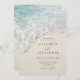 Este clássico e elegante convite para o casamento na praia de verão apresenta uma foto de perto de uma praia com uma onda oceânica e um mar, e uma elegante tipografia clássica, perfeita para casamentos de destino.