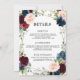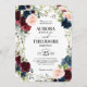 Cartão de convite para o casamento floral, elegante e moderno, com cor geométrica romântica, com detalhes sobre o dorso, apresenta uma bela burgundy / marsala, cor-de-rosa-pincel, pêssego, rosas de cor azul-marinho com folhagem correspondente em fundo de madeira rustica de marinho e estrutura de ouro. Perfeito para um casamento no outono/no meio do verão. Por favor, encontre mais designs e variações na minha loja de "blisswedingpaperie". E sinta-se à vontade para contactar-me para mais personalizações ou itens correspondentes