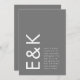 Essa fantástica colocação em Cinza de monograma e texto, limpo e arrumado, moderno, mas muito lúcido, em negrito, em Design e Branco para estilo minimalista, porém é personalizável para outras cores e faz parte de um conjunto único e de uma coleção de Phrosne Ras. Isso seria excelente para aqueles que planejavam um evento divertido preto e branco, com este convite de casamento sendo ousado e inspirado por pessoas divertidas que amam uma boa festa e não se importam de se desviar da tradição.