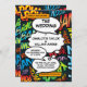 Um convite de casamento inspirado na pop de arte, inspirado em quadrinhos divertidos, legal e modernos, que coloca o wham, zap, pow em qualquer evento de celebração de casal de super-heróis. Personalize com seus detalhes especiais do evento de casamento no texto moderno. Projetado por Thisnotme©