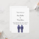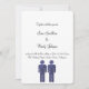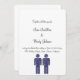 Um simples convite de casamento branco com duas figuras azuis de homens no fundo do cartão. Este convite diz, "Juntamente com o NOME e NOME dos pais, convide-o a celebrar o casamento deles na DATA, LOCALIZAÇÃO" Encontre produtos correspondentes na coleção Hello Glitter.