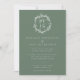 Imprima seus convidados com este convite elegante de casamento de Jessica Amber. Este cartão clássico apresenta um monograma duplo floral - o primeiro e último inicial de ambos os participantes - que você edita para adicionar suas iniciais. A inscrição elegante mostra os nomes da noiva e do noivo, e detalhes do casamento, incluindo a localização, data e hora. O fundo é um verde de sábio reservado. Este convite é preferido para quando o casal estiver hospedando o evento. Procure na minha coleção o conjunto de convites correspondente. ・ ・ ・ Para mais suites de casamento, visite minha loja Zazzle.com/EventsByJessicaAmber ・ ・ ・ Para pedidos personalizados, envie-me uma mensagem no Zazzle
