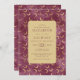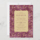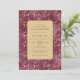Um elegante padrão celeste de luas de crescente de ouro e estrelas a brilhar numa lavagem a cores-d'água a hambúrgueres fornece fundo para o texto a hambúrguer num retângulo cor-de-ouro pálido, com cantos arredondados. O design de cor d'água burgundy é repetido na parte traseira do cartão.