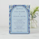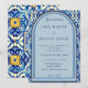 Crie sua celebração única com nosso padrão de azulejo azul personalizável. Este convite elegante combina estilos clássicos e modernos para um toque de eterno.