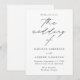 Um convite de casamento minimalista e moderno, com os detalhes do seu casamento em letras simples e pretas com "o casamento de" em um roteiro elegante de caligrafia. O fundo branco pode ser alterado para uma cor de sua escolha. Projetado para coordenar com a nossa coleção de casamento do Modern Elegance.