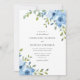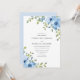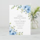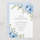 Lindas flores azuis de aquarela e decoração verde este elegante convite de casamento floral. Use as ferramentas de modelo on-line para alterar o estilo de fonte, a cor e o plano de fundo para qualquer uma de suas opções.