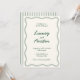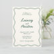 Celebre sua história de amor com este convite de casamento, maravilhosamente subestimado, inspirado no Mediterrâneo. Os elegantes sotaques verdes esmeraldos e design de fronteira ondulada evocam o charme dos verões italianos e dos pôrs do sol costeiros, criando uma estética sofisticada mas quente. Perfeito para casamentos de destino ou celebrações íntimas, essa design reflete uma mistura harmoniosa de simplicidade e beleza eterno. Deixe este convite dar o tom para o seu dia inesquecível. Explore a coleção de cheios nesta página para localizar itens correspondentes que complementam este design impressionante.