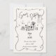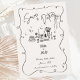 Este estilo trendy desenhado à mão ilustrado de casamento, salvar a data do convite apresenta um rabisco esquisito e uma comida e rabiscos de bebida. O design bicho-branco e peculiar inclui fontes escritas à mão e rabiscos de celebração. Estilo preto e branco para um convite de casamento moderno e moderno.