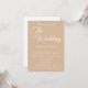 Estilo simples, convite de casamento que apresenta um fundo de cor bege e em tendências, juntamente com nomes de noiva e noivo futuros e data do evento, hora, local e registro impressos em um script branco e estilizado. Personalize seu convite de casamento substituindo informações por seu. Selecione o estilo e a quantidade do seu papel de convite. Projetado para coordenar com nossa coleção de Casamento de Estilo Simples bege.