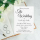 Simples convite de casamento de estilo que apresenta um fundo branco juntamente com os nomes da noiva e noiva futuras e a data do evento, hora, local e registro impressos em letras negras. Personalize seu convite de casamento substituindo informações por seu. Selecione o estilo e a quantidade do seu papel de convite. Projetado para coordenar com nossa coleção de Casamento de Estilo Simples Branco.