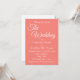 Estilo simples, convite de casamento que apresenta uma tendência, fundo de cor de coral junto com nomes de noiva e noivo futuros e data do evento, hora, local e registro impressos em um script branco e estilizado. Personalize seu convite de casamento substituindo informações por seu. Selecione o estilo e a quantidade do seu papel de convite. Projetado para coordenar com nossa coleção de Casamento de Estilo Simples Coral.