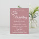 Estilo simples, convite de casamento que apresenta um fundo de cor de rosa empoeirado e de tendências, juntamente com os nomes de noiva e noivo futuros e a data do evento, hora, localização e registro impressos em um script branco estilizado. Personalize seu convite de casamento substituindo informações por seu. Selecione o estilo e a quantidade do seu papel de convite. Projetado para coordenar com a nossa coleção de Casamento de Estilo Simples Dusty Rosa.