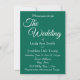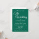 Estilo simples, convite de casamento que apresenta um fundo de cor verde-esmeralda em tendências, juntamente com os nomes da noiva e noiva futuras e a data do evento, hora, localização e registro impressos em um script branco estilizado. Personalize seu convite de casamento substituindo informações por seu. Selecione o estilo e a quantidade do seu papel de convite. Projetado para coordenar com a nossa coleção de Casamento de Estilo Simples Emerald Verde.