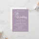 Estilo simples, convite de casamento que apresenta um fundo de cores modernas e de tendências, juntamente com nomes de noiva e noivo futuros e data do evento, hora, localização e registro impressos em um script branco e estilizado. Personalize seu convite de casamento substituindo informações por seu. Selecione o estilo e a quantidade do seu papel de convite. Projetado para coordenar com nossa coleção de Casamento de Estilo Simples Mauve.