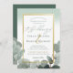 Modelo de convite de casamento Eucalyptus. Eucalipto, sábio, verde esmeralda desbotado, folhagem azul-esfarelada de verde com uma folha de ouro elegante, moderna e simples e elegante roteiro caligráfico. (As folhas de eucalipto no design são fotos manipuladas). Esta design de casamento faz parte da minha coleção de Casamentos Eucalyptus que inclui: convite para casamento, Salve os designs de Data, Obrigado, RSVP, designs, favores personalizados e outros artigos de papelaria e janto de casamento, itens de festa. (Você pode encontrar todo o conjunto entre as minhas Coleções.)
