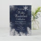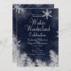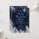 Festa de Natal de casamento de inverno de floco de neve azul em aquarela com prata falsa. tema de casamento elegante, moderno e de inverno mágico para festas de Natal, apresentando flocos de neve de prata falsa, neve caindo, pó de estrelas e galhos de pinheiros nevados. Perfeito para celebrações de inverno, Natal e Ano Novo. Texto totalmente personalizável