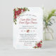 Design de cartão elegante com buquês de canto, cor d'água, vermelho e branco, divisores florais, belos guiões de mão e fontes especiais, tudo sobre um fundo padrão de flocos de neve. Use a ferramenta Personalizar para adicionar suas informações e fazer alterações. Para encontrar itens, por favor, visite minha coleção Poinsettia Flocos de Neve de inverno.