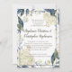 O Convite para Casamento da Flor da Elegante Blue Watercolor apresenta rosas brancas creme, margaridas e cravos com folhas e bagas azuis e verdes. Linda aquarela pintou fundo para um tema clássico clássico e sofisticado. Adorável para um verão, flor do jardim floral ou tema azul e branco.