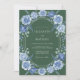 Este design apresenta uma disposição circular de flores azul-ardósia e folhagens delicadas, evocando um charme botânico vintage. O estilo pictórico adiciona um toque artístico, criando uma atmosfera sofisticada e romântica.