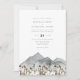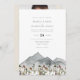 Este convite para o casamento apresenta montanhas de aquarelas boho e flores silvestres coloridas com um design simples e minimalista. Este é o convite perfeito para uma celebração de casamento de primavera ou outono. Edite facilmente a maioria dos textos e mude a foto na parte de trás para seu toque pessoal.