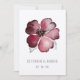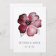 Uma aquarela minimalista pintada com uma flor vermelha de escarlate mostra este convite minimalista de casamento impresso em um papel branco luxuoso, com seus primeiros nomes e data numérica na frente e os detalhes no verso.