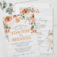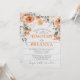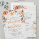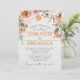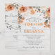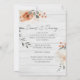 Flores e folhagem impermeáveis em cores neutras e sujas em cima de uma cinza se juntam para fazer um incrível convite moderno e elegante para o final do verão/casamento outono. Impressão frente e verso. Inclui envelopes. Laranja, terracotta, sábio, creme, pêssego e verde com um galho rústico, inspirado em madeira clara de design.