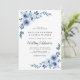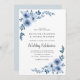 Um design elegante com flores azuis de aquarela. Você pode personalizar o texto, o tamanho do texto, as cores e a fonte neste convite de casamento.