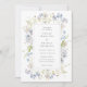 Convite de casamento com um belo quadro de flores silvestres roxas e azuis. Personalize com suas informações.