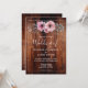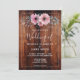 Flores de aquarela elegantes e russas no convite para casamento de madeira de celeiro. Adicione seus próprios nomes e texto para personalizar.
