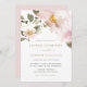 Convide familiares e amigos com este convite de casamento floral. Este convite para o casamento apresenta ilustrações aquáticas de flores cor-de-rosa pinceladas e folhagem com um roteiro elegante. Este convite de casamento de aquarela será perfeito para primavera e casamentos outono. Personalize adicionando os detalhes do evento.
