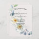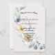 Um belo convite para o casamento feito sobre um fundo branco com uma flor de aquarela azul e branca Este convite é parte de um conjunto de produtos que correspondem ao design. Este convite é perfeito para um casamento mais elegante numa igreja.