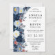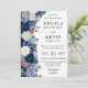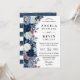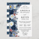Linda Aquarela Azul e Branco Flores de inverno design com estrutura floral com configuração de brilho dourado e padrão de faixas