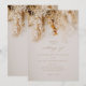 Um convite de casamento de outono romântico e moderno com realismo fotográfico, apresentando um buquê floral seco neutro em tons de trigo, ocre e ferrugem.