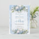 Convite Casamento de Flores de Prata Branca de Seda Azul c