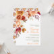 Este convite de casamento rústico e elegante apresenta flores e folhagens verdes em aquarela laranja, vermelha e amarela. O texto combina fontes manuscritas e serifadas para um visual moderno e sofisticado. Isso é perfeito para um casamento de outono.