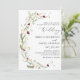 Este convite elegante da nossa coleção de Casamentos de Veneração Selvagem apresenta flores de aquarela distantes com delicadas vinhas verdes, emparelhadas com uma letra moderna. Perfeito para qualquer estação. Para fazer alterações avançadas, selecione Personalizar -> Editar usando a ferramenta Design.