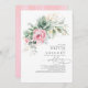 O ouro romântico elegante e único suculenta o verde e as flores cor-de-rosa nos convites para casamento