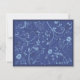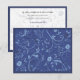 Caule ondulado e flores em tons de azul compõem o principal elemento gráfico para este convite único. Uma moldura azul escura é repetida na frente e no verso com a imagem floral usada como marca d'água atrás do texto. Use para casamentos, festas de noivado, aniversários ou eventos corporativos. Disponível em cores alternativas com selos e brindes correspondentes.