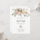 Este simples e romântico convite de casamento apresenta belos buquês bústicos de flores de aquarela e verde em tons neutros de pêssego, terracota e marfim, com elegante texto e roteiro escuros.