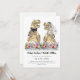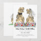 Delicie seus convidados com este convite de casamento engraçado com tema de dinossauro, com noivos T-Rex em pé em um prado colorido de flores silvestres. Fácil de personalizar com os nomes dos noivos, data do casamento e todos os detalhes. Ilustrações divertidas de noivos T-Rex com tipografia moderna e caprichosa. Arte original e única da artista Catherine Sweetman